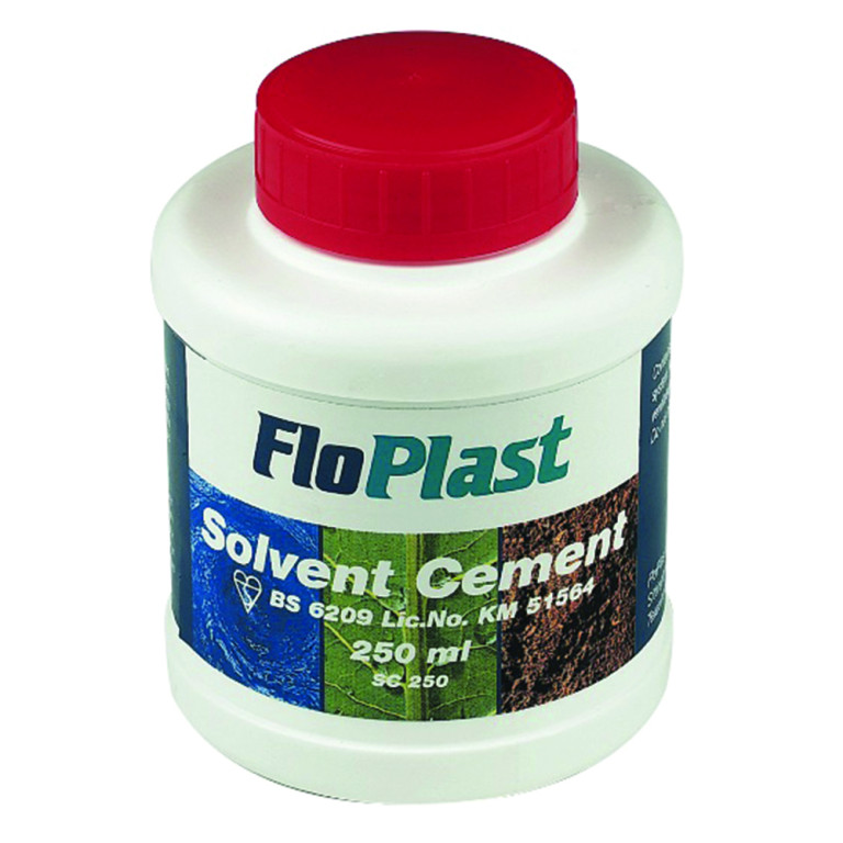 SC250 250ml SOLVENT CEMENT - Chemically bonds certain types of plastic coving or trunking. For use with solvent weld waste products. Can achieve up to 25 joints per tub. Supplied with brush applicator.