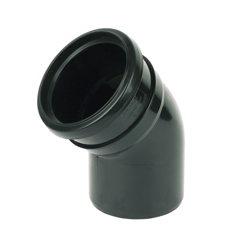 SP163 110mm BLACK 135* BEND-S&S - Lightweight fitting manufactured from uPVC for strength and durability. Easy to work with and suitable for high temperature waste discharges. The use of silicone lubricant on all seals will facilitate jointing