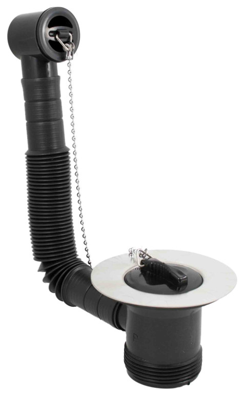 PEERLESS Sink Combination Overflow Waste Centre Screw (Plastic Body, Black Overflow Face) - Chrome - Plastic body 3 3/8” stainless steel flange, Variflex 160-330mm flexible tube, No: 6 ball chain and black overflow face