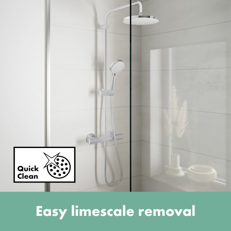 - Easy care: Limescale can be removed by simply wiping the silicone nozzles on the shower head (QuickClean)