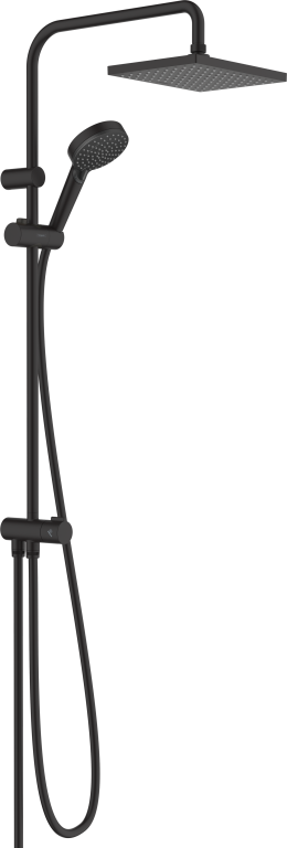The hansgrohe Vernis Shape 230 Reno EcoSmart shower system is the intelligent and bold solution for simple bathroom refurbishments. It is connected to an existing tap or water connection on the wall (e.g. hansgrohe FixFit) via a second shower hose. With its bold surface finish in trendy matt black, the shower system fits in really well with modern interior design. Yet another advantage: The overhead or hand shower can be conveniently selected with just a twist. The water quantity and temperature are controlled separately using the existing tap. So if a bath tub is converted to a shower, for example, the bath mixer can continue to be used with a connection for a hand shower. Or the bath tub can be upgraded with a high-quality hansgrohe shower solution. This shower head consumes around 30 % less water than the standard version here (EcoSmart) to save money and the environment.