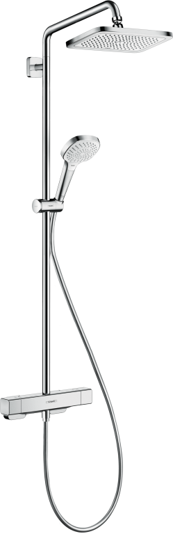 - hansgrohe quality: thermostatic mixer, shower rail and overhead shower made of metal