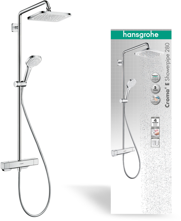 Transform the shower into a feel-good oasis for all with the Croma E 280 1jet showerpipe. This showerpipe’s design features a wealth of experience from hansgrohe for care-free indulgent showering.