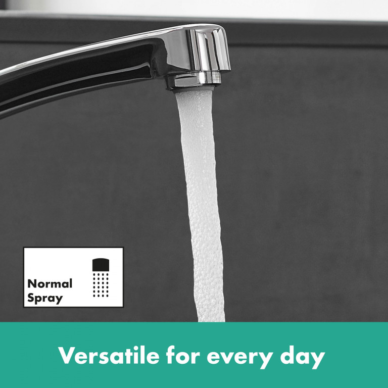 hansgrohe has developed a technology that generously mixes water with air (AirPower). This not only makes the waterflow from this mixer fuller and softer, but also reduces splashing.- Single-lever kitchen mixer at a comfortable height – for plenty of freedom of movement at the sink (ComfortZone 160)