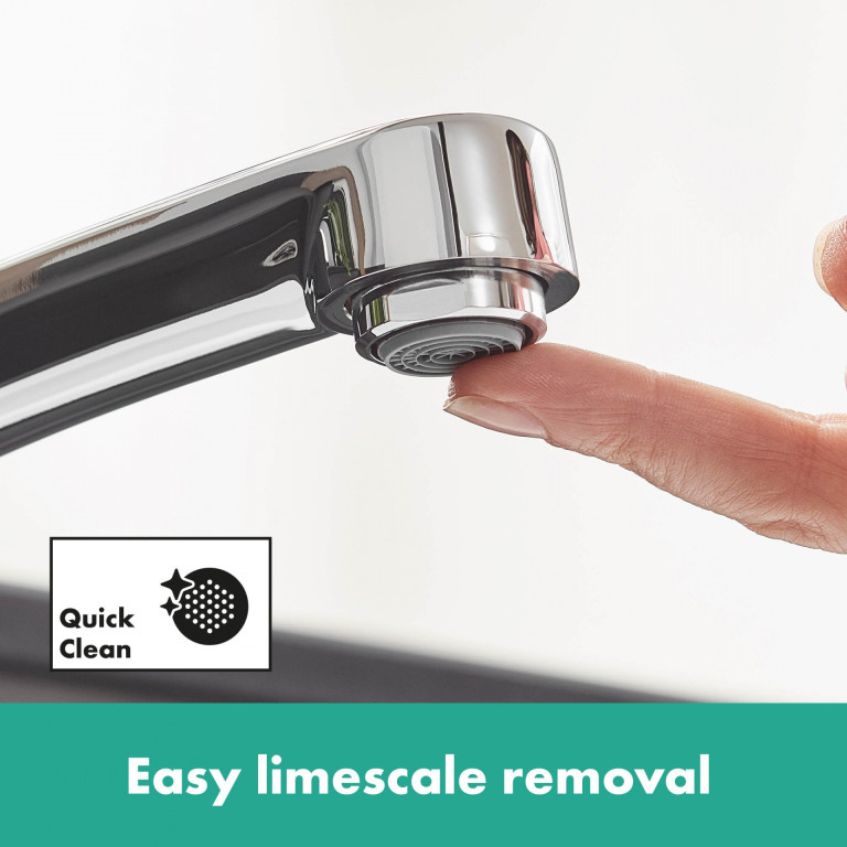 - Convenient cleaning: Limescale can be effortlessly removed by lightly wiping the silicone insert on the spout (QuickClean)
