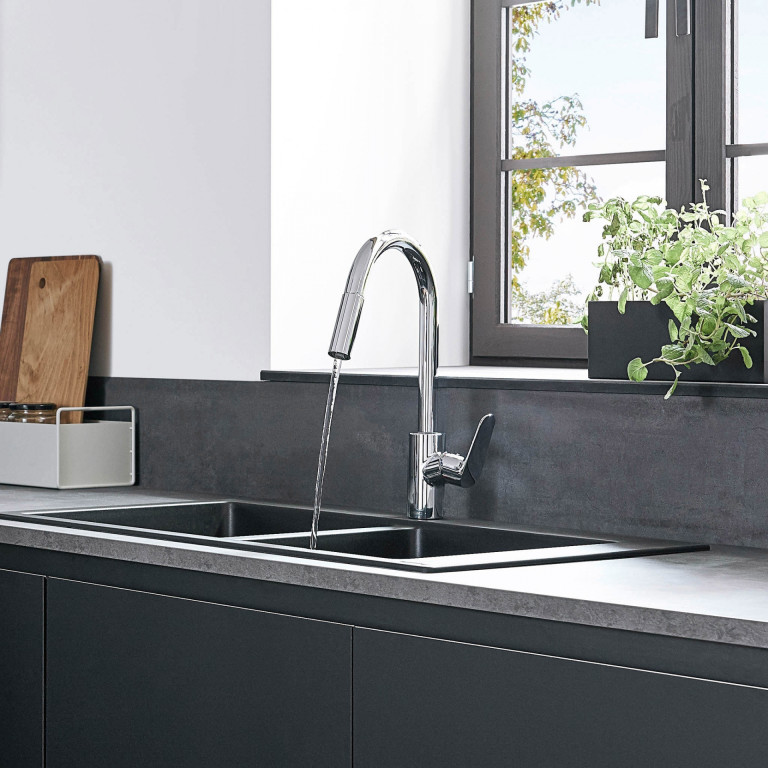 - More convenient: comes with a pull-out spray for a larger working radius and thorough rinsing of fruit and vegetables