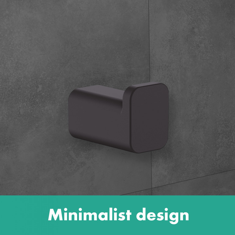 And the hansgrohe quality keeps the promises made by the premium design: THet AddStoris bath towel holder is made of metal, so it is made to last. This product is both a sustainable use of resources and it reduces the amount of plastic in bathrooms. The surface finish in a matt black colour is easy to clean and is one of the colour schemes in the range of hansgrohe special surface finishes for taps (FinishPlus). So everything can match perfectly.