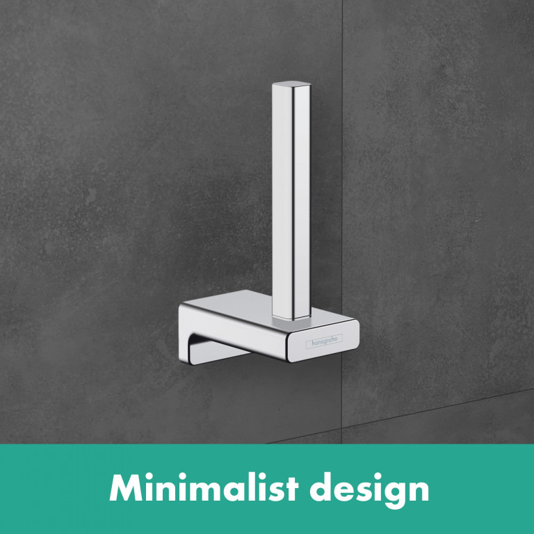 And the hansgrohe quality keeps the promises made by the premium design: THet AddStoris spare roll holder is made of metal, so it is made to last. This product is both a sustainable use of resources and it reduces the amount of plastic in the environment. The surface finish is lavishly chrome-plated – a material that is easy to clean and keeps its shine.