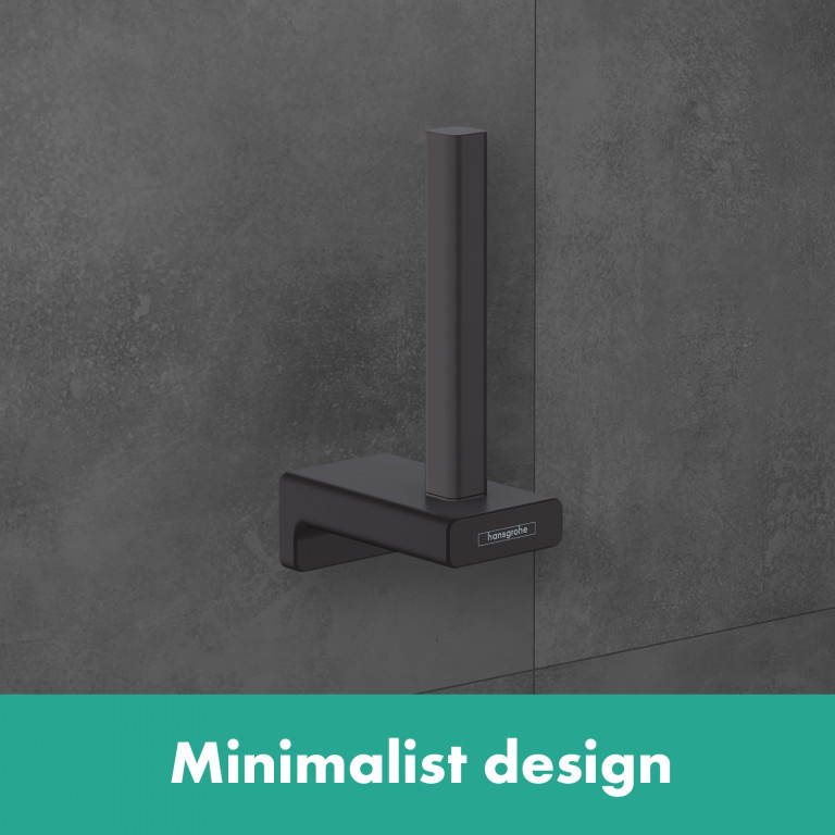 And the hansgrohe quality keeps the promises made by the premium design: THet AddStoris spare roll holder is made of metal, so it is made to last. This product is both a sustainable use of resources and it reduces the amount of plastic in bathrooms. The surface finish in a matt black colour is easy to clean and is one of the colour schemes in the range of hansgrohe special surface finishes for taps (FinishPlus). So everything can match perfectly.
