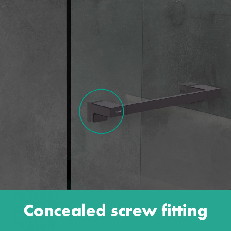And the hansgrohe quality keeps the promises made by the premium design: THet AddStoris shower door handle is made of metal, so it is made to last. This product is both a sustainable use of resources and it reduces the amount of plastic in bathrooms. The surface finish in a matt black colour is easy to clean and is one of the colour schemes in the range of hansgrohe special surface finishes for taps (FinishPlus). So everything can match perfectly.