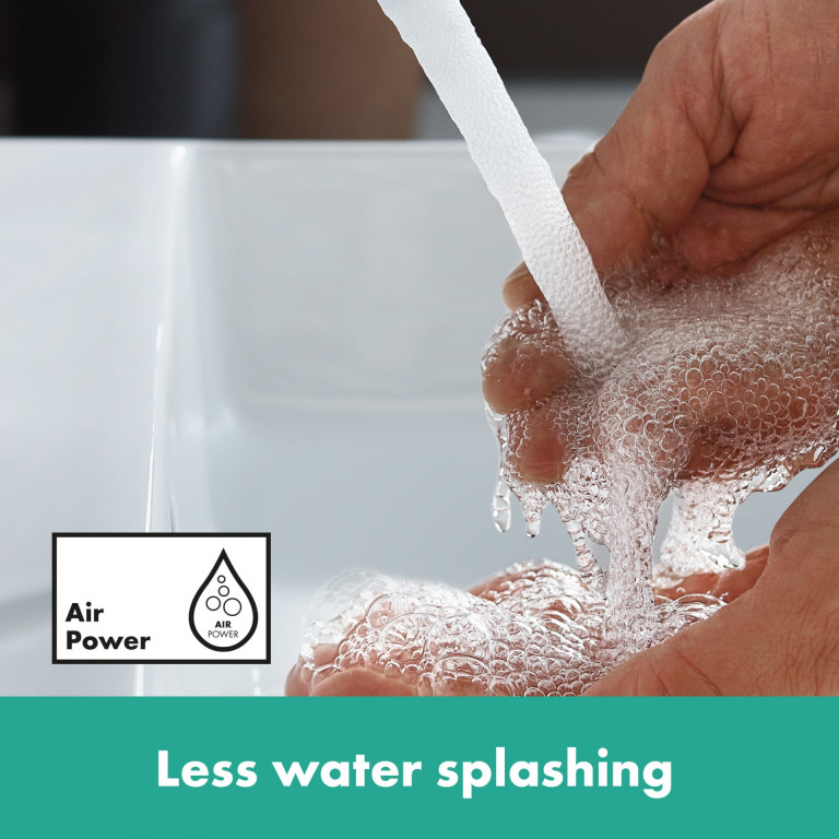- This tap enriches the water with air for a full water jet with less splash (AirPower)