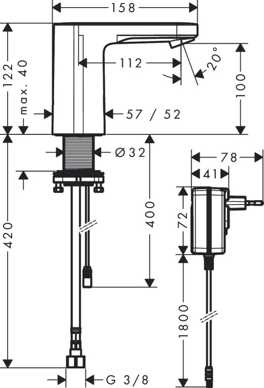 The Vernis Blend electronic tap for cold water with 230 V mains connection is the professional solution for public and semi-public washrooms. The sensor tap from the hansgrohe Vernis Blend series is always the first choice when safe hygiene, permanently reliable functionality and low operating costs are priorities. It can supply cold or centrally premixed water. No need for a separate operating lever. This allows for 100% touch-free hand washing. Hygiene is improved, especially in places, such as public sanitary rooms in restaurants and schools or in hospitals and care facilities, where there are many different users.