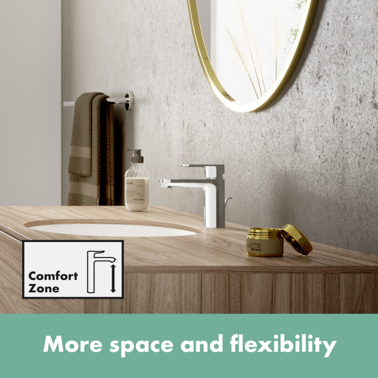 - More room to move: The distance between the spout and wash basin creates space and makes it easier to use (ComfortZone 100)