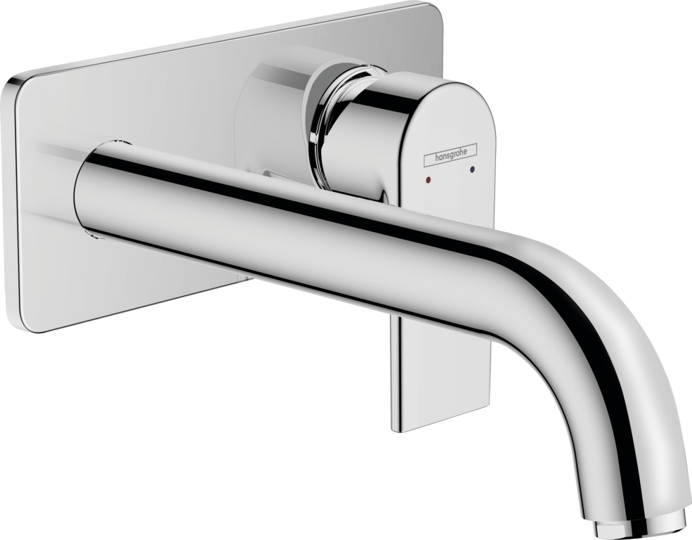 The distinctive design of the hansgrohe Vernis Shape single lever basin tap for wall mounting (20.4 cm spout) brings a bold look and plenty of comfort to the wash basin. Especially as the 20.4 cm long spout offers plenty of room to move and makes it easier to quickly wash hair or fill tall containers at the wash basin. Another advantage: The flow rate in this basin tap is limited to max. 5 l/min, even with high water pressure (EcoSmart). The water is enriched with air for a full water jet (AirPower). This creates plumper and lighter droplets that feel velvety soft and cause less splash.