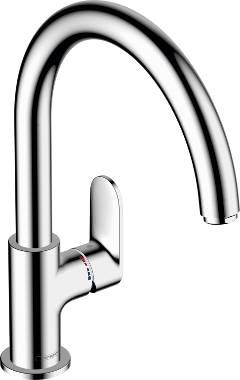 The water quantity and temperature can be set using the user-friendly and ergonomically shaped handle. It controls the high-quality hansgrohe ceramic mixer system and does not loosen, even after frequent use. The Vernis Blend kitchen tap enriches the water with air for a full water jet with less splash (AirPower).- Timeless design for tight budgets: The harmonious design of the Vernis Blend taps brings subtle elegance and plenty of comfort to the kitchen