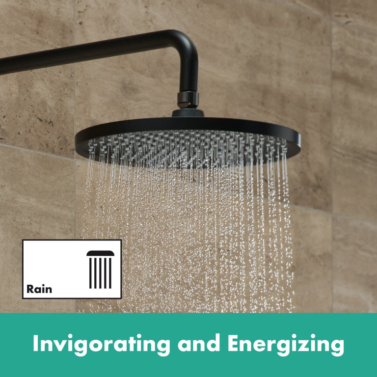 The striking matt black design makes a real statement. Especially when the shower head is combined with hansgrohe taps with the same finish. This trend colour is perfect for a contemporary bathroom.