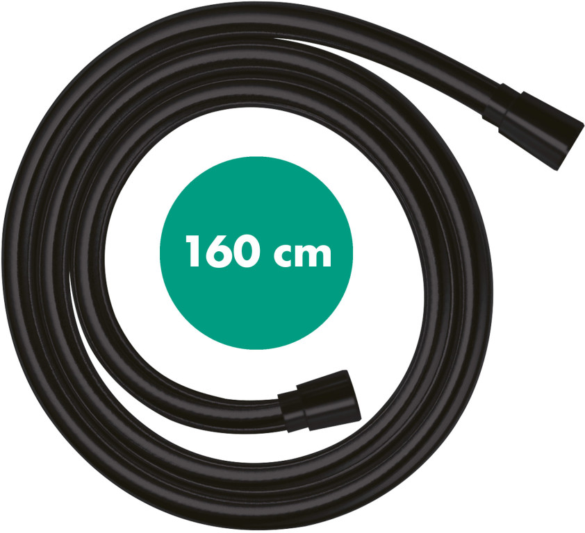 The hansgrohe Isiflex 160 cm shower hose in matt black is an effective combination of quality, convenience and style. The robust plastic hose ensures comfort and convenience in the shower and offers plenty of room to move with its 1.60 m length. Its smooth outer casing is also robust and creates a visual highlight in the bathroom, here in trendy matt black. Paired with a shower head in the same colour surface finish – matt black – the shower hose becomes part of a harmonious ensemble that creates a bold contrast and suits modern bathroom settings. Yet another advantage: A special mounting set stops the shower hose from tangling so that the colour-coordinated accessory is always in good shape.