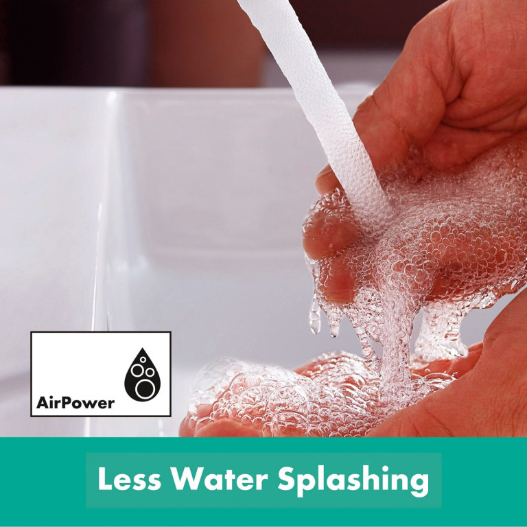 The renowned hansgrohe quality brings the promises of a winning design to life: A high-quality ceramic mixer system controls the water volume and temperature. This keeps working smoothly and reliably even after frequent use. Want to save water and energy? Yes, totally automatically: when the handle is in the centre position, only cold water flows. Hot water will only run if it is turned to the left (CoolStart). The flow rate is limited to max. 5 l/min even at high water pressure (EcoSmart). For a full water jet, the single lever tap enriches the water with air (AirPower). This creates a soft jet that splashes less – meet the beauty of water.