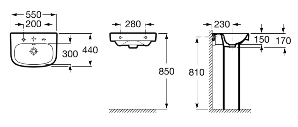 550 x 440 2 tap hole basin and full pedestal - Pack includes basin and full pedestal