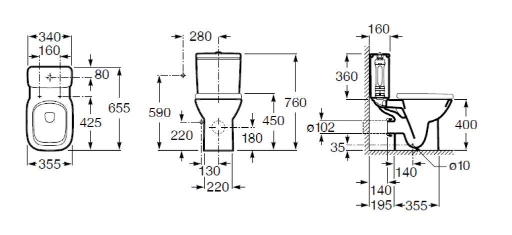 Cistern with 4.5/3 litre and chrome push button - Cistern includes chrome push button