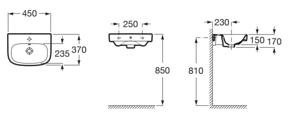 450 x 370 1 tap hole cloackroom basin - The cloakroom basin is suitable for mounting on the wall, freeing up floor space.