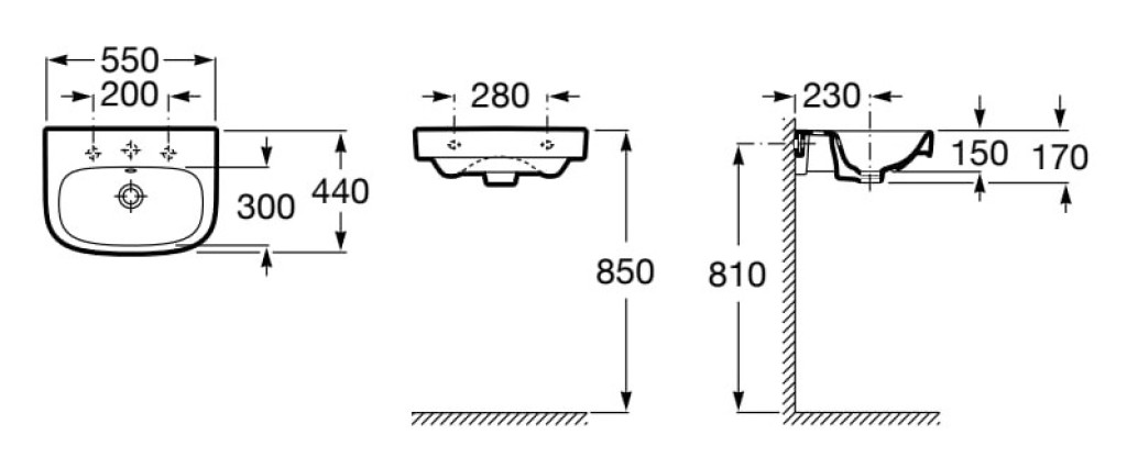 550 x 440 2 tap hole wall-hung basin - The wall hung basin is convenient for bathrooms with limited floor space.
