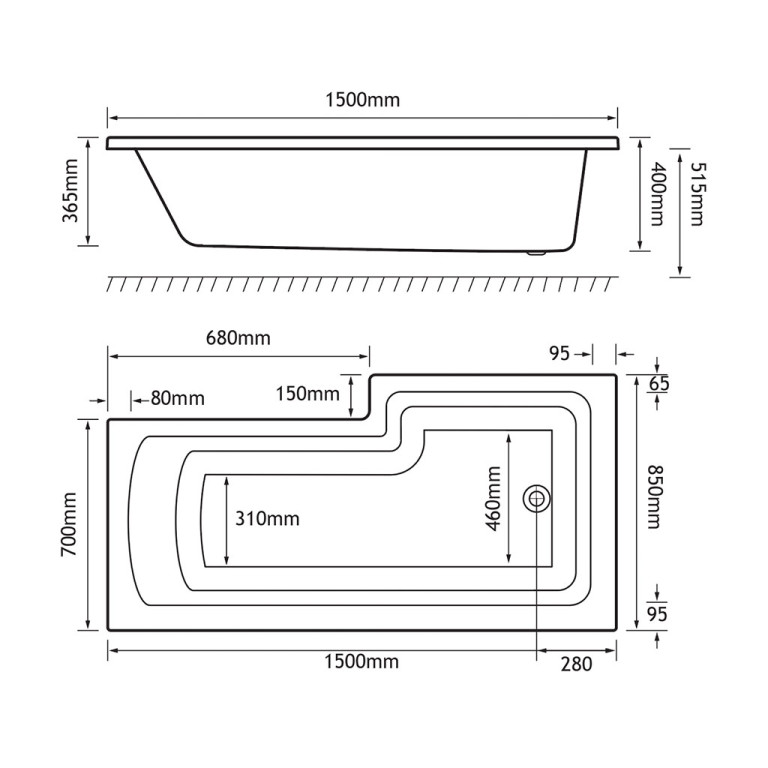 - Length: 1500mm, Width: 700mm, Internal depth: 400mm, Height: 515mm