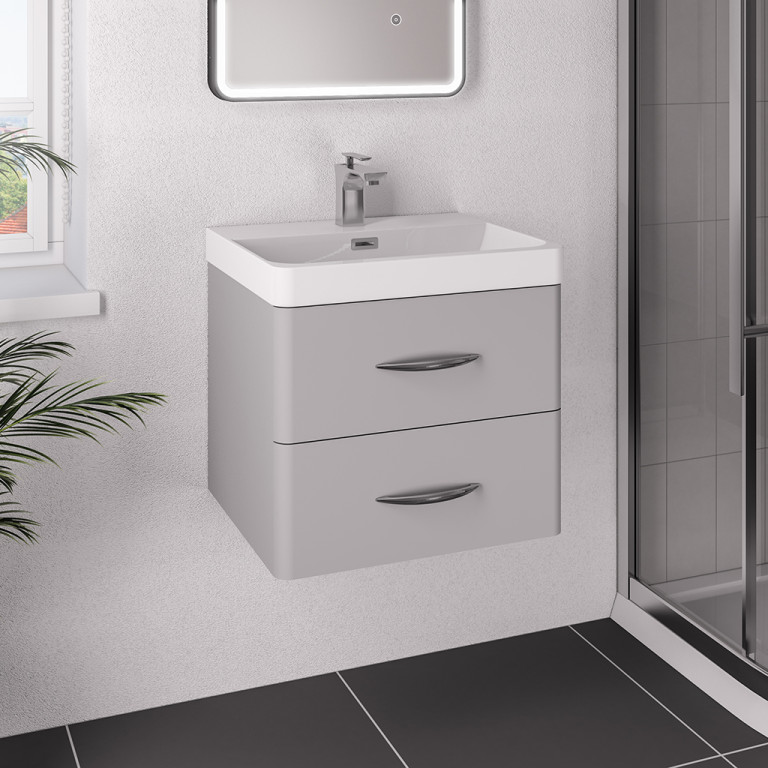 Our newly designed Cavone cloakroom bathroom furniture features a luxurious curved basin that flows perfectly with the curved lines of the drawers of the vanity unit. Features soft close doors, interchangeable chrome or black handles, built in overflow.