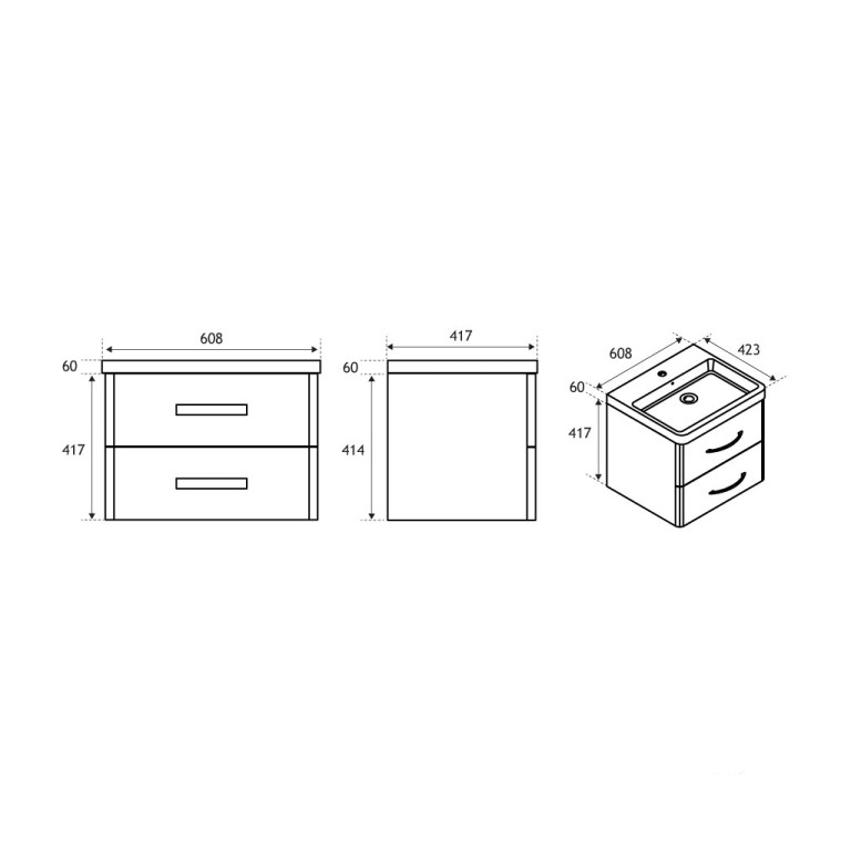 Unit only, basin sold separately.- 2 Drawer