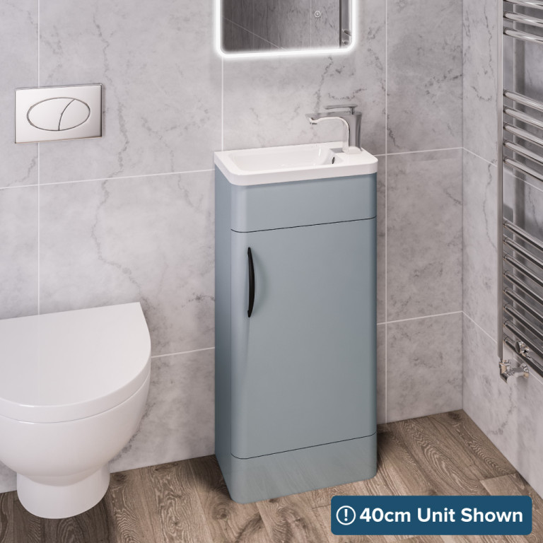 The Cavone bathroom furniture features a luxurious curved basin that flows perfectly with the curved lines of the doors of the vanity unit. Features soft close doors, interchangeable chrome or black handles, built in overflow. Unit only, basin sold separately.