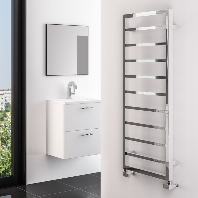 Framed rectangular multirail available in a variety of finishes to create a stylish focal point in any bathroom.