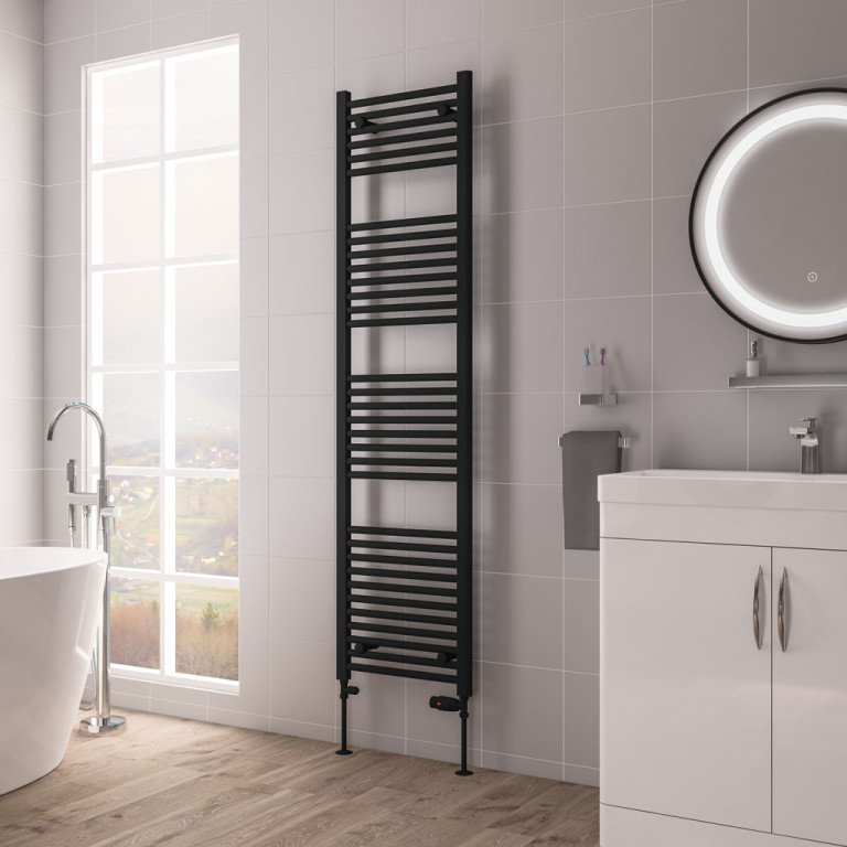 Biava Multirail HV towel rail rewrites the standards with the air vent hidden at the back of the towel rail and flush finished tops. Available in 5 different colours; gloss white, matt white, matt anthracite, matt black and chrome.