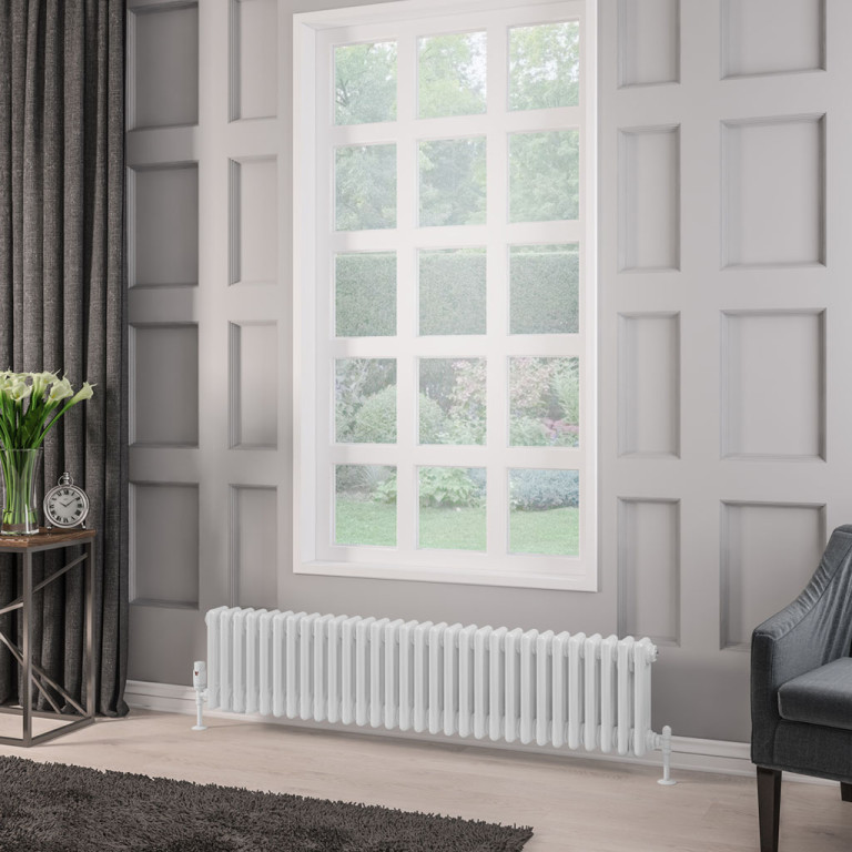 A traditional radiator which will give a Victorian touch of authenticity to any room but will also create an elegant look to a contemporary interior. This radiator boasts high outputs to ensure the whole room is warm. Comes with the options of traditional feet and available in gloss white, matt anthracite, bronze effect of chrome effect finishes.