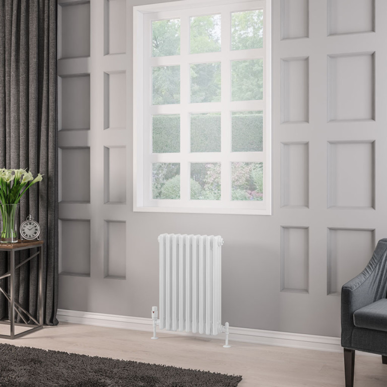 A traditional radiator which will give a Victorian touch of authenticity to any room but will also create an elegant look to a contemporary interior. This radiator boasts high outputs to ensure the whole room is warm. Comes with the options of traditional feet and available in gloss white, matt anthracite, bronze effect of chrome effect finishes.