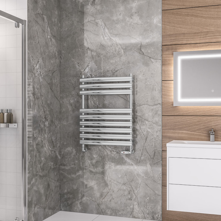The stunning towel rail that is created with elliptical shaped tubes that are placed horizontally. Available in multiple colour choices including chrome.