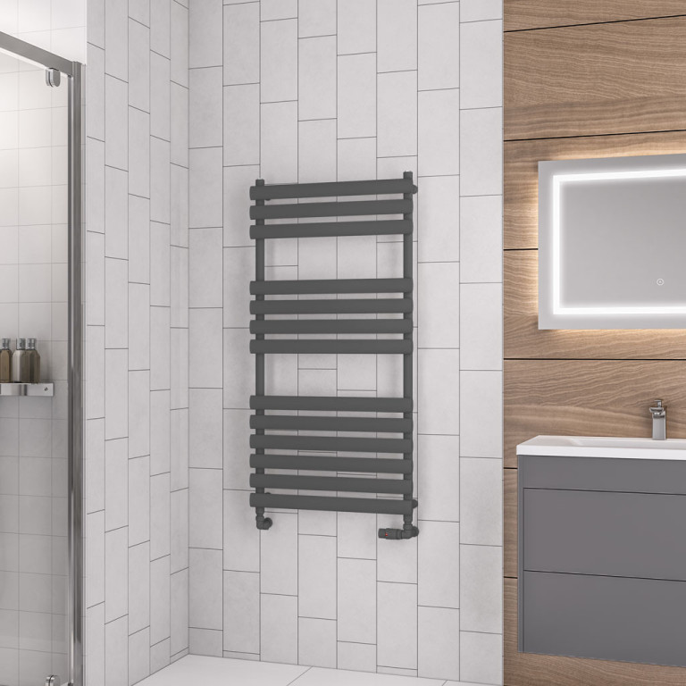 The stunning towel rail that is created with elliptical shaped tubes that are placed horizontally. Available in multiple colour choices including chrome.