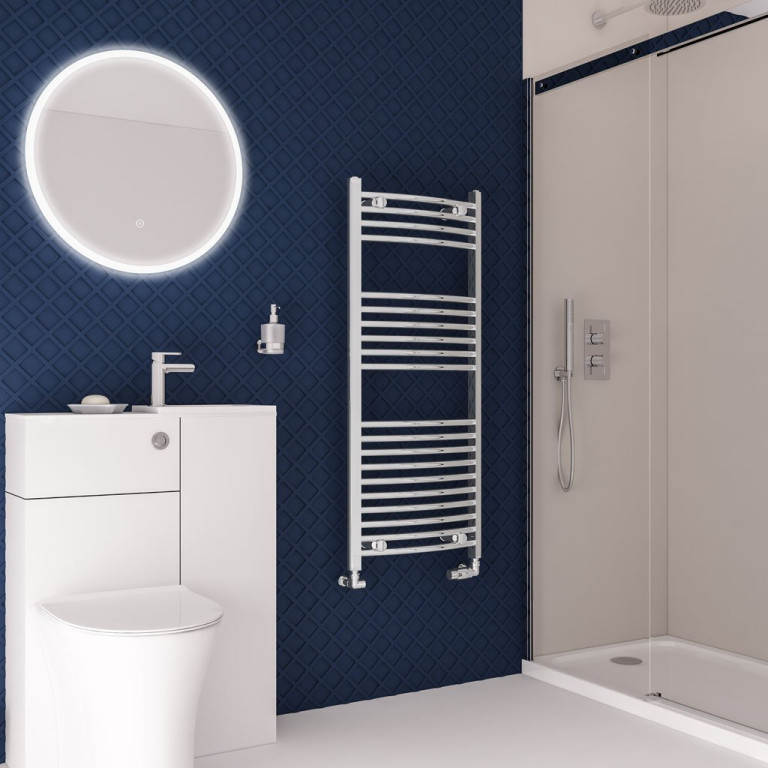 A high quality contemporary range available in a curved design and different surface finishes. Robe hook accessories can be used with this towel rail as well. This range is the ultimate in simplicity of style and practicality for your bathroom, keeping your towels warm.