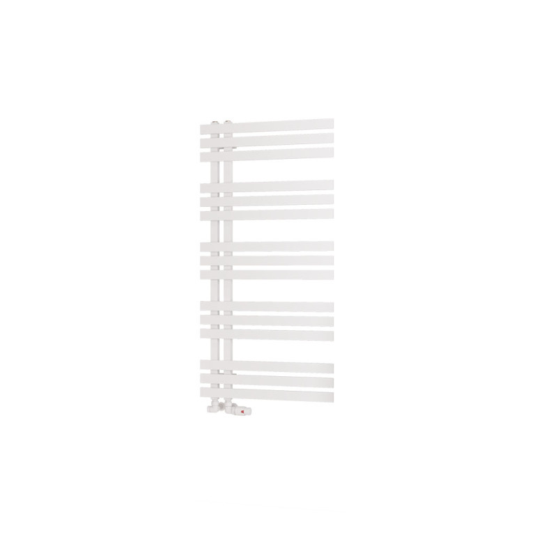 A modern, versatile designer towel rail. Available in 6 colours with reversible installation possibility.