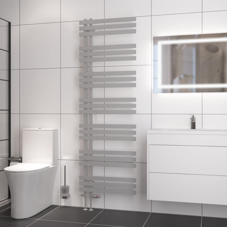 A modern, versatile designer towel rail. Available in 6 colours with reversible installation possibility.