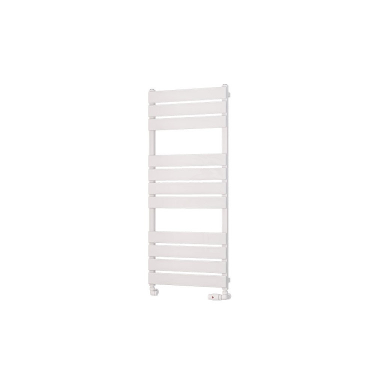 A highly effective designer towel rail with broad horizontal bars that is available in 5 colour finishes, gloss white, matt anthracite, matt black, matt cobalt blue and chrome.