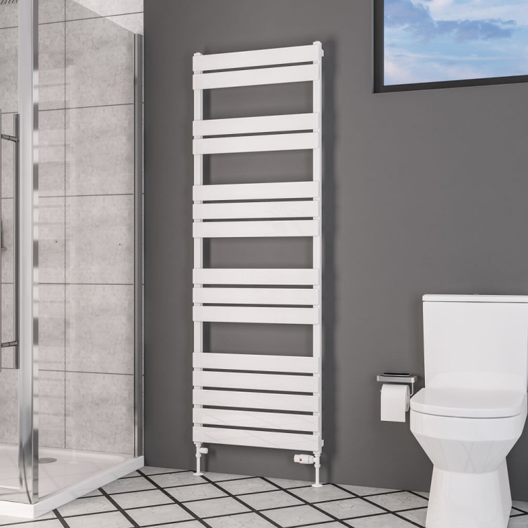 A highly effective designer towel rail with broad horizontal bars that is available in 5 colour finishes, gloss white, matt anthracite, matt black, matt cobalt blue and chrome.