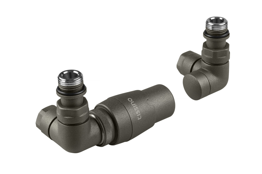 Hugo Double Angle Valves Including Thermostatic Head - Lusso Grey
