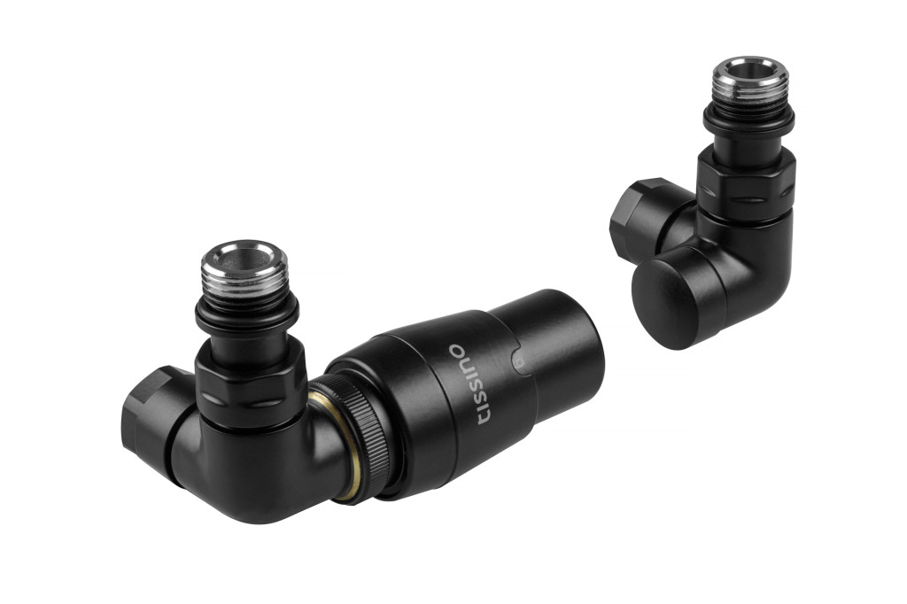 Hugo Double Angle Valves Including Thermostatic Head - Anthracite