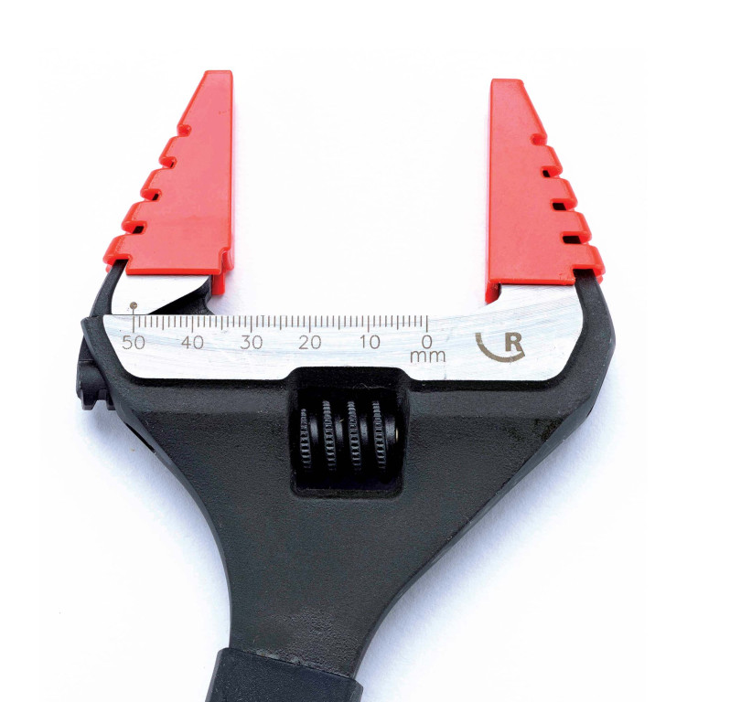 This 10" wide jaw wrench is made from hot forged chrome vanadium steel, and has an 50mm max opening range. Ideal for use when working in confined spaces. Hot forged from chrome vanadium steel to industrial standard specifications this wrench has a smooth, accurate size adjustment. Non-slip ergonomic softgrip handles deliver a positive grip during use. They are supplied with removable soft-grip jaw protectors which prevent damaging chromed or polished surfaces.