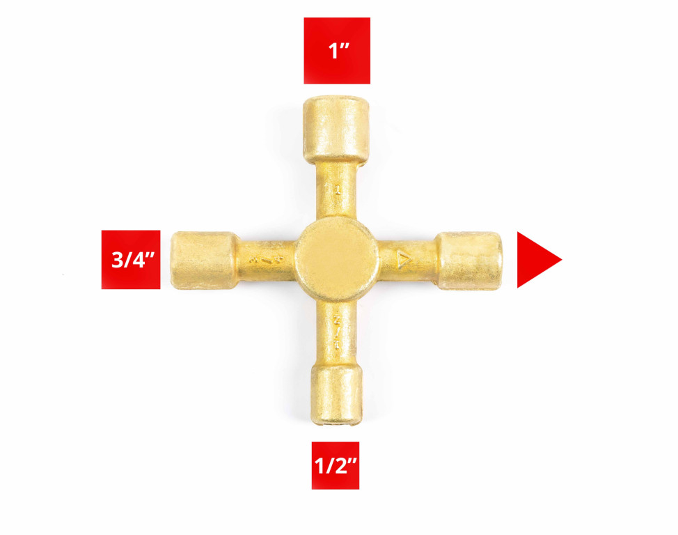 A key for electric meter boxes, drain off valves and lockshield radiator valves. Solid brass construction. This key can be used for electric meter boxes, drain off valves and lockshield radiator valves. • Fits 1/2", 3/4" and 1" lockshield radiator valves • Fits gas and electric meter boxes • Fits most drain off valves • Solid construction