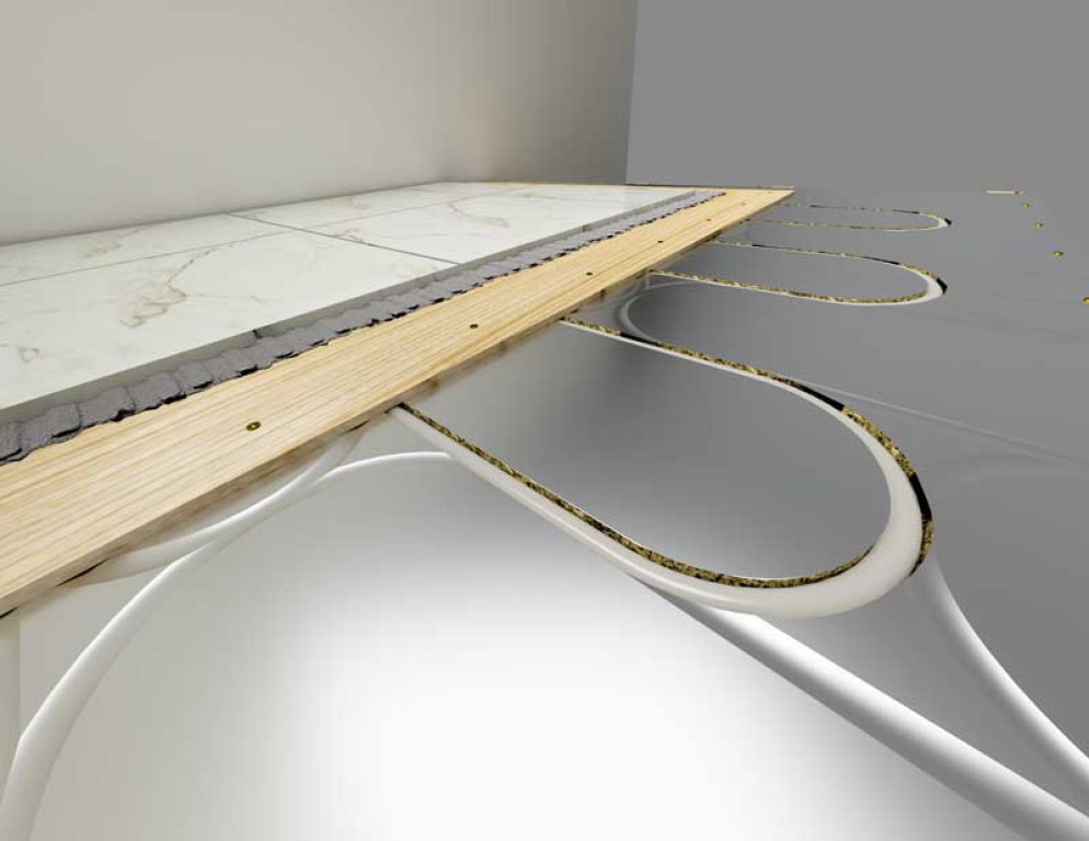 - Uses a 12mm heating pipe that is built into the structural floor for fast response times