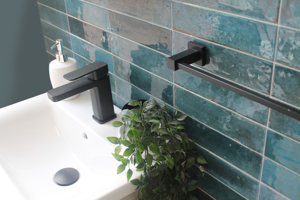 Noir A Series Matt Black Double Shelf Brackets and Glass Shelves