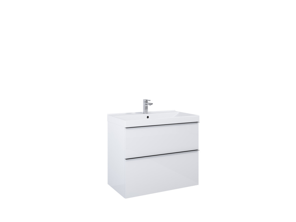 Look 80cm 1 Drawer Wall Hung Basin Unit White Gloss, Gold/Brass handle