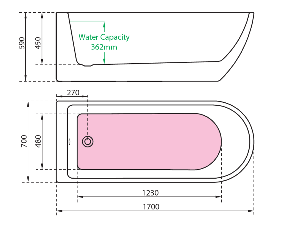 Knightsbridge Gloss Black Bath Including Waste 1500 x 780mm