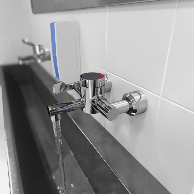 HTM04-01 (DO8) compliant TMV3 hospital mixer tap with integral thermal flush mechanism. - Complies with HTM04-01